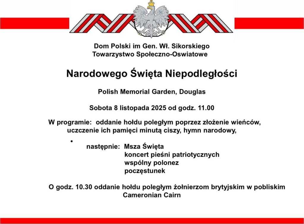Podczas uroczystości w naszym Domu Polskim im. Generała Władysława Sikorskiego w Glasgow nie zabraknie wzruszających chwil, wspólnego śpiewania pieśni patriotycznych, występów artystycznych oraz ciepłej, rodzinnej atmosfery. Będzie to doskonała okazja, by spotkać się ze znajomymi, poznać nowych ludzi i poczuć wspólnotę, która łączy wszystkich nas – niezależnie od miejsca zamieszkania.