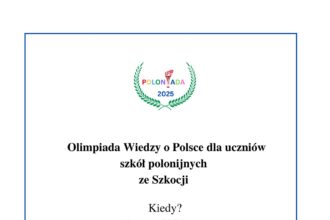 15 stycznia upływa termin zgłaszania szkół do POLONIADY!!! Gorąco zachęcam wszystkich do udziału w VI edycji POLONIADY, czyli Olimpiady Wiedzy o Polsce dla uczniów szkół polonijnych ze Szkocji. Ideą konkursu…